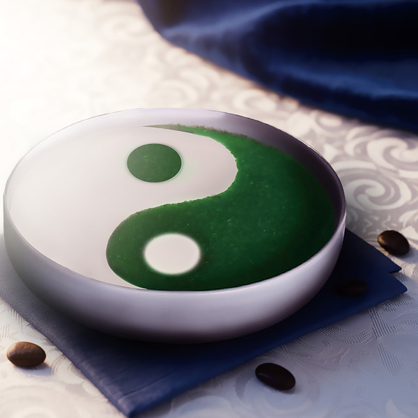 潮汕名菜護國菜做為改良發想,白羹用雞肉南北杏熬製,綠羹以莧菜菠菜勾芡,搭配干貝、蟹腿、蝦仁,呈現太極造型,兼具濃醇與清爽。