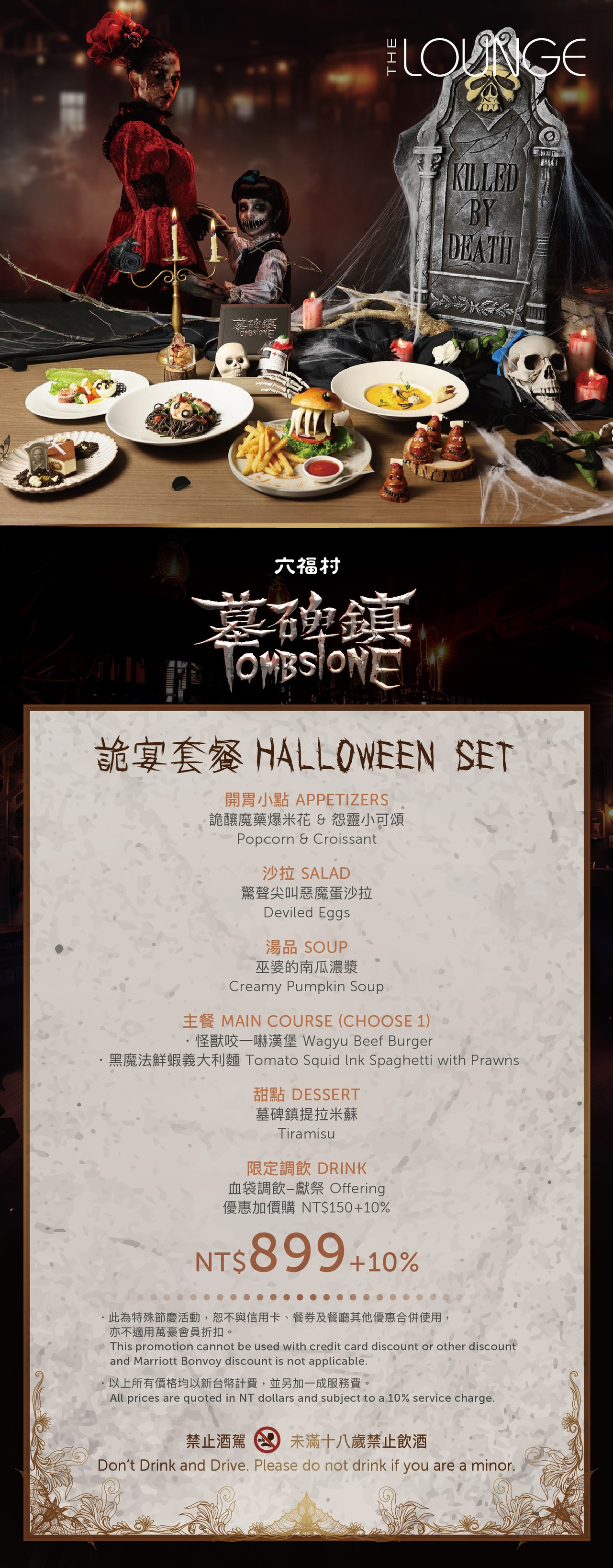 以完整五道式饗宴貫穿墓碑鎮元素,售價 NT$899+10% / 套